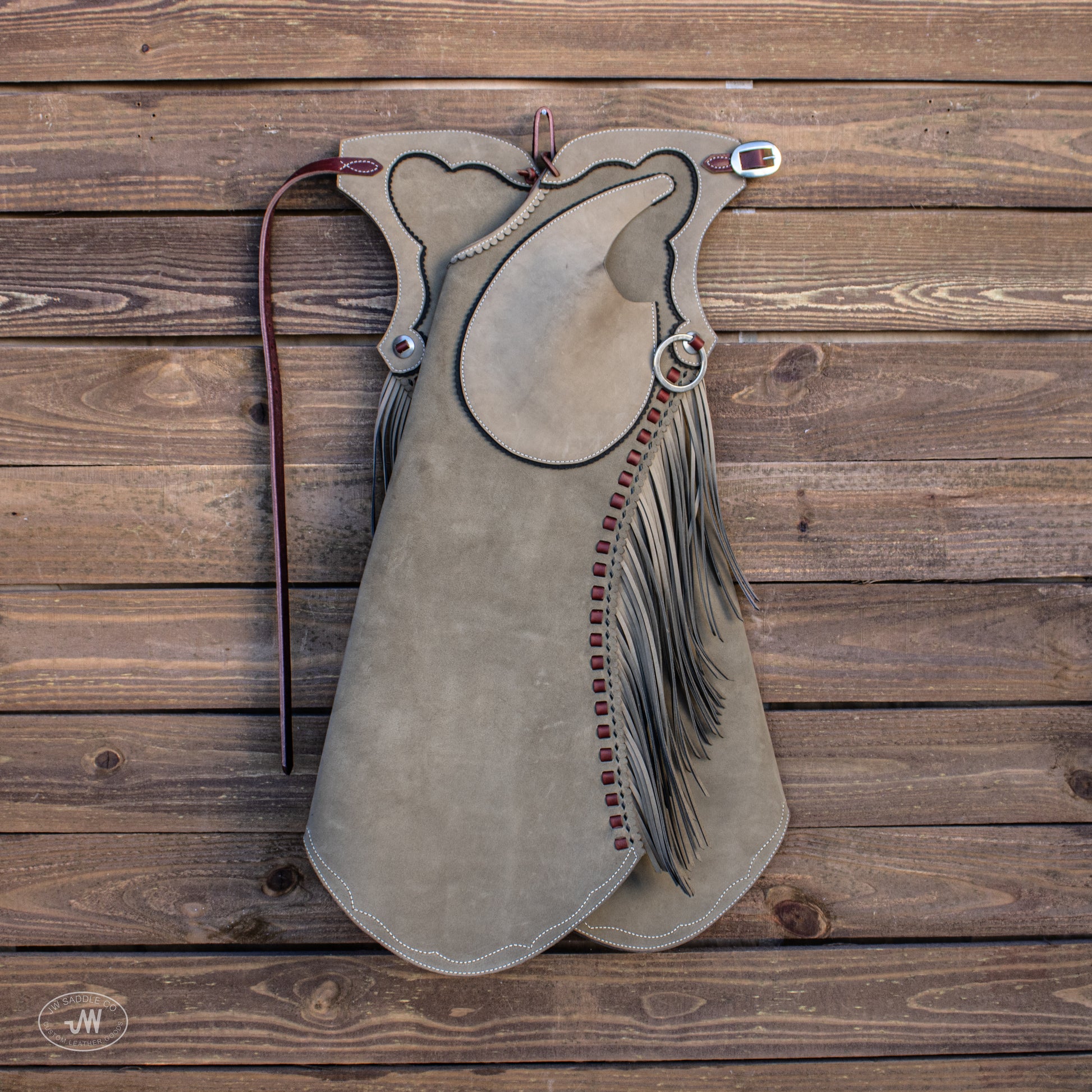 Full step in Arizona bells. Classic mitten pocket on left, classic inside pocket on right. Full scalloped in black with a hidden inside weight. Stout built and ready to go to work