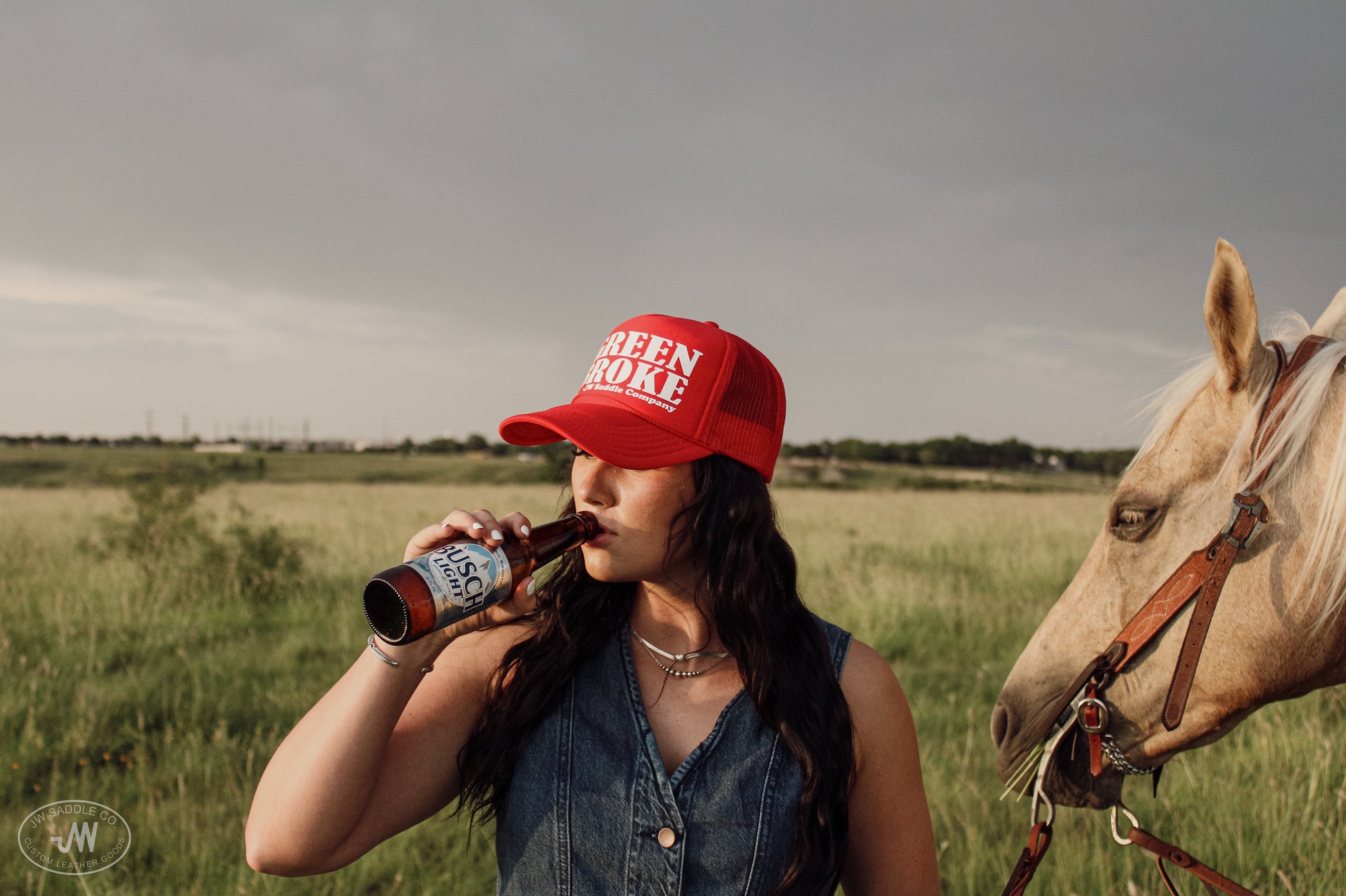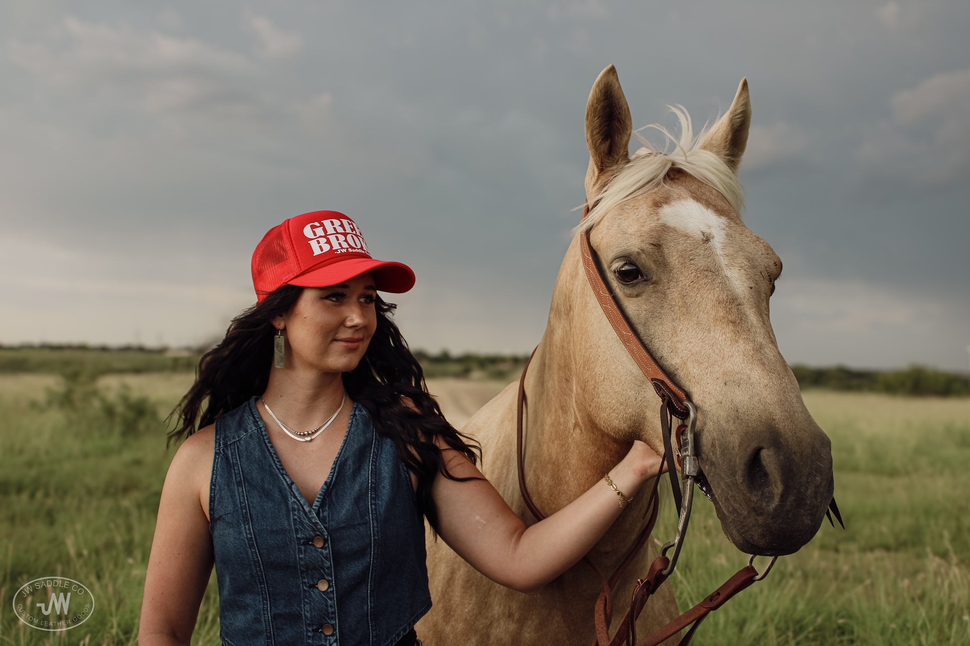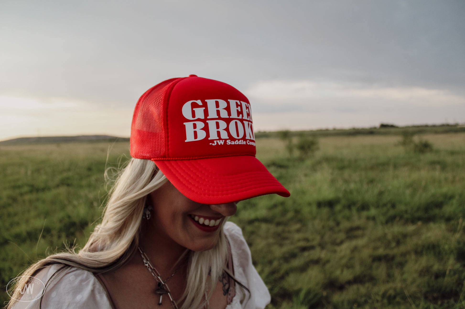 J.W. Saddle Co. Green Broke cap in color Red.